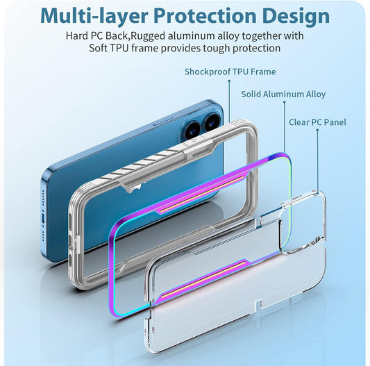 Phonix Aluminum Alloy Frame Case For iPhone 15 Rainbow Clear Case
