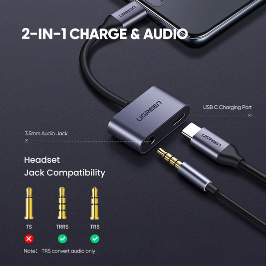 2 Ports USB-C Hub + 3.5mm Audio UGREEN