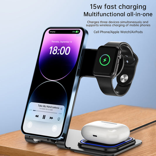 3 in 1 Wireless Charging Station (Black) 15W Aluminum Alloy